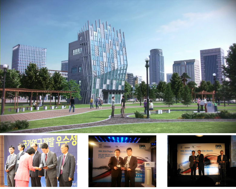 The development of technique for constructing dispersal-type water supply system and vertical water treatment design developed by performing tasks of research group of Ministry of Land, Infrastructure and Transport for the purpose of safe and stable water supply suitable for paradigm of future society were nominated for "100 excellent performances of national research and development" by Ministry of Science, ICT, and Future Planning and "Project Innovation Awards" which is a award to be given by International Water Association after evaluating the excellence and innovativeness in water engineering areas in the world and Honor Award were received in East Asia and other global areas.